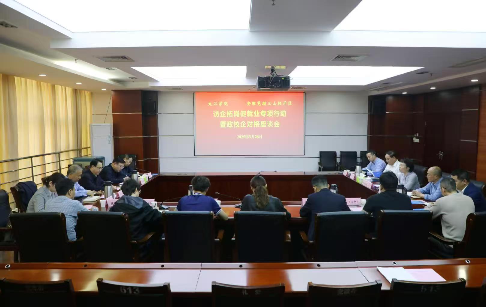3月25日至27日,九江公司党委书记李明斌带领学校相关部门及部分二级学院负责人前往安徽芜湖三山经济技术开发区,开展访企拓岗促就业专项行动,通过座谈交流、实地走访等方式,深化政校企合作,精准对接区域产业人才需求,拓宽毕业生就业渠道。