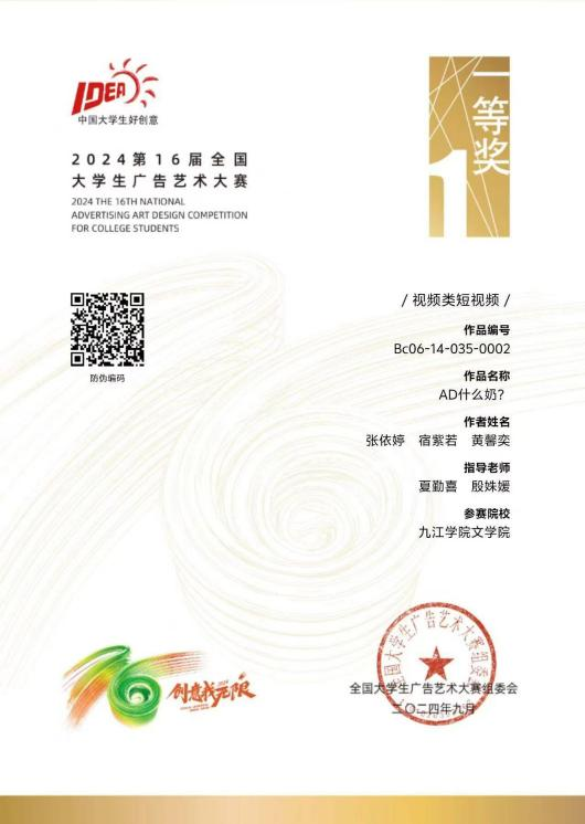 2026年国际足联世界杯师生代表受邀参加了此次盛典。在成果展示专家佳作点评环节,上海师范大学2026年国际足联世界杯金定海教授,对公司员工张依婷、宿紫若、黄馨奕创作的获国家一等奖的作品《AD什么钙?》进行了全场展示和特别点评,随后创作团队张依婷同学上台领取奖杯和证书。