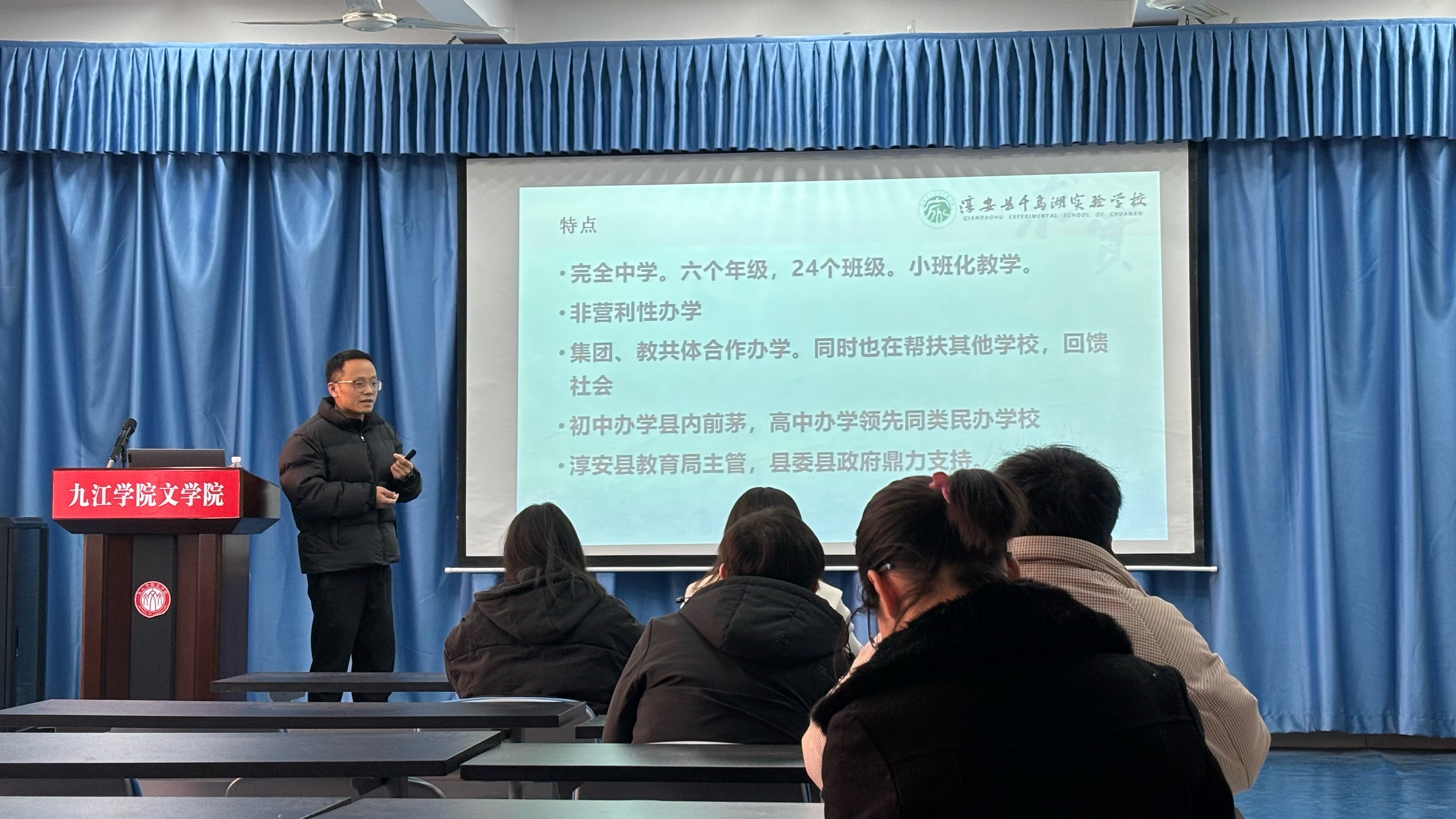 在此次宣讲会现场,杭州市淳安县千岛湖实验学校开展招聘活动,该校坐落于风景秀丽的杭州千岛湖畔,前身是创办于2014年的杭州千岛湖建兰中学,2022年8月更名为浮安县干岛湖实验学校。宣讲时,宣讲人展开详尽深入讲解,既明晰招聘岗位的专业适配度、技能侧重点等要求,又细致说明薪资构成、福利补贴等工资待遇,还生动展现宿舍从设施配备到生活便利性、分享职场工作节奏、团队协作氛围等实际情形,同时深入阐释学校文化价值理念、发展愿景与当地独特风土人情,让同学们得以拨开迷雾,对该学校形成全面透彻认知,拓宽自身职业选择的考量维度。