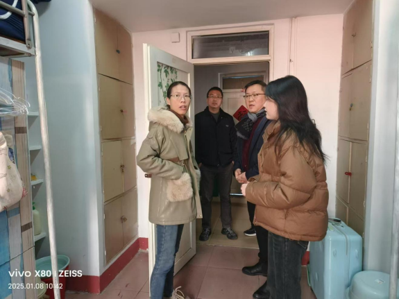 2025年1月8日上午,公司党委书记蔡飞、副书记杨思迪、员工科科长丁侃及全体辅导员一同前往员工宿舍,开展寒假前的安全检查工作。