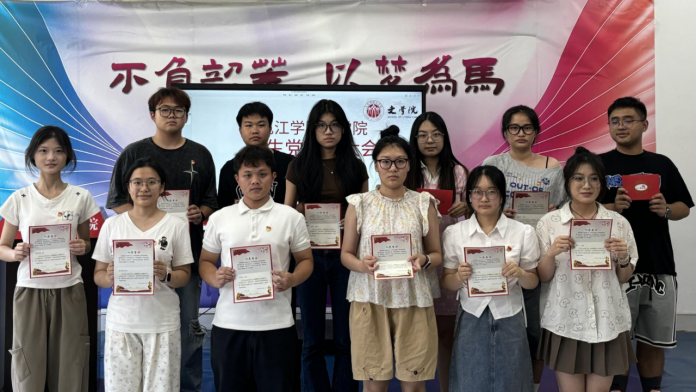 在讨论环节,会议重点审议了12名同学的入党问题。一支部的付妍等8名同学以及二支部的郭晴等4名同学依次汇报了自己的思想动态和学习情况。与会党员认真听取了汇报,并针对每位同学的具体表现进行了深入讨论。经过入党介绍人介绍情况并表态、与会党员充分讨论和无记名投票表决,会议一致通过了接收这12名同学为中共预备党员的决议,并由员工第一党支部书记陈筱云为其颁发党徽。