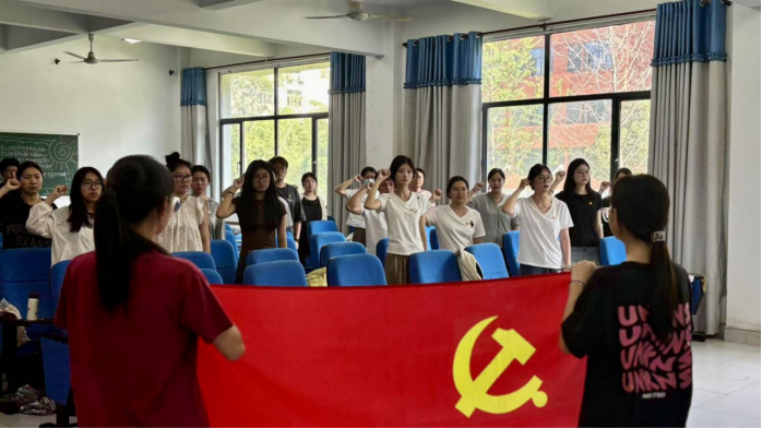 此外,会议还讨论了12名预备党员的转正问题。一支部的徐帅等10名同志,以及二支部的刘毅、董佳同志依次汇报了自己在预备期内的思想转变、学习工作表现和为同学服务的具体情况。经过认真审议,与会党员一致认为这些同志符合转正条件,同意其按期转为中国共产党正式党员。会议最后,全体党员面向党旗庄严宣誓,重温入党誓词,铿锵有力的誓言表达了大家不忘初心、牢记使命的坚定信念。