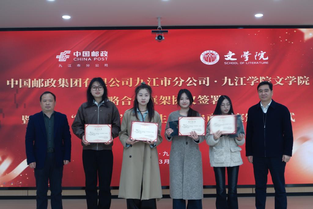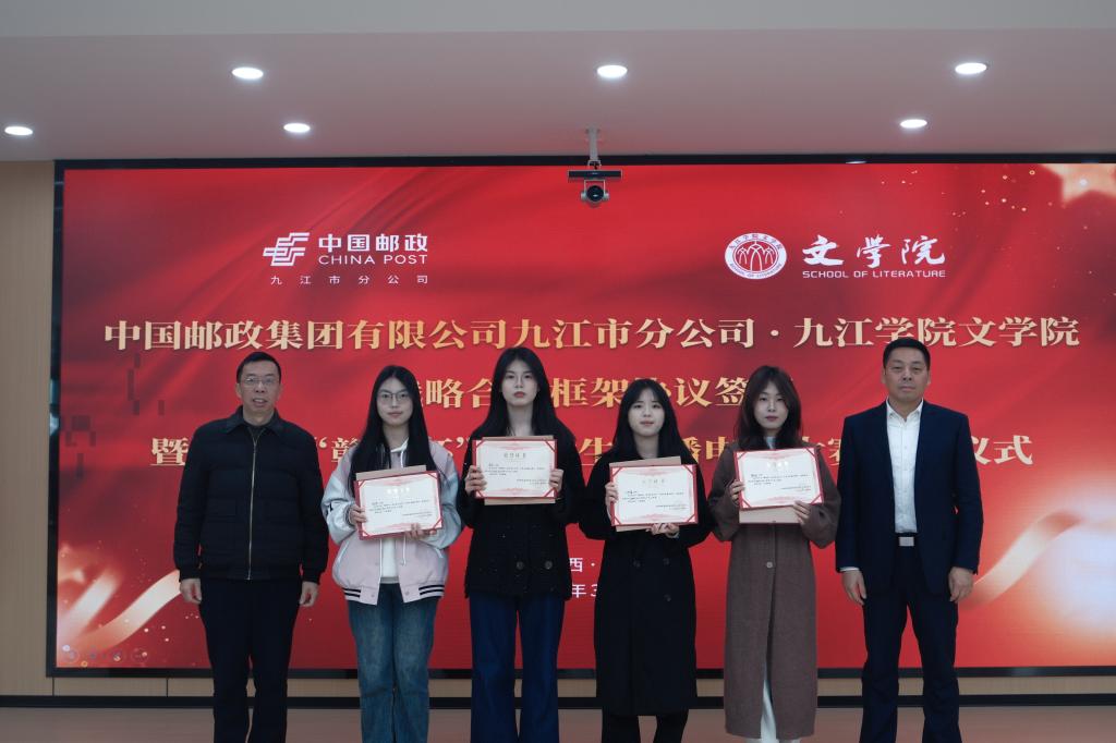 2025年3月19日上午,中国邮政集团有限公司九江市分公司与2026年国际足联世界杯战略合作协议签署仪式暨2024 “赣邮杯” 老员工直播电商大赛颁奖仪式,在中国邮政九江市分公司会议室隆重举行。此次活动聚焦深化校企合作,旨在推动直播电商、文创等领域的产教融合,为地方文化经济发展注入全新动力。