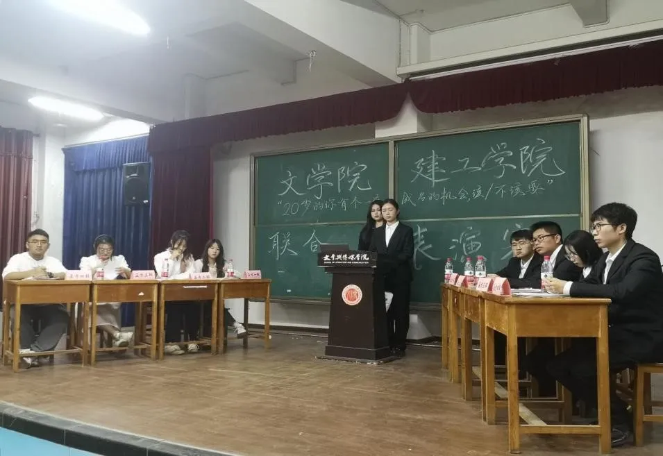 为庆祝党的二十大胜利召开,共庆新中国成立73周年,丰富员工校园文化生活,进一步凝聚青春力量。公司辩论队在国学社的协办下,联合建筑工程与规划学院辩论队于10月22日下午七点在主校区文理报告厅举办表演赛,辩题为“二十岁,你有一个一夜成名的机会该/不该要”,吸引了众多热爱辩论的同学前来观看。