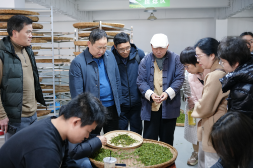 在茶博园负责人黄森林总经理的引导下,党员教师们走进千亩生态茶园,观摩现代化制茶工艺,亲身体验采茶、制茶等非遗技艺。茶博园将茶产业与文旅、研学深度融合的实践,让教师们深刻感受到传统文化资源转化为经济价值的潜力。公司党委书记蔡飞表示,乡村振兴需要文化铸魂,高校应发挥学科优势,挖掘地方文化基因,助力乡村打造特色产业品牌。