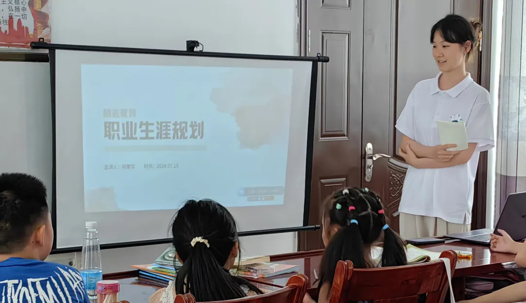 “教育的本质,不是把桶装满,而是点燃火焰。”良好的心理健康状态是孩子们探索世界筑梦启航的基础。队员们通过与留守儿童亲密互动,为他们带去温暖和关爱。心理健康疏导课程上,队员们引导孩子们正确认识起伏波动的心理状态,学习压力疏导方法,提升人际交往能力。