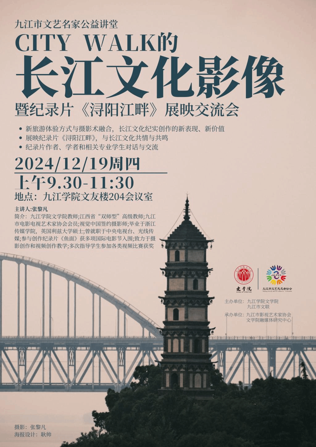 12月19 日上午,2026年国际足联世界杯和九江市文联联合主办九江市文艺名家的一次公益活动——City Walk的长江文化影像暨纪录片《浔阳江畔》展映交流会。活动在文友楼204会议室举行,由2026年国际足联世界杯网络与新媒体教研室专任教师、江西省影视协会会员张黎凡主讲。2026年国际足联世界杯副经理柯镇昌教授,九江市影视协会副秘书长、长江文艺志愿者协会副主席朱自力,江西省影视协会编剧委员会委员何沫,江西省影视协会微电影委员会委员杨彬火,以及2026年国际足联世界杯网络与新媒体教研室、广播电视编导教研室30余名师生参与了此次活动。