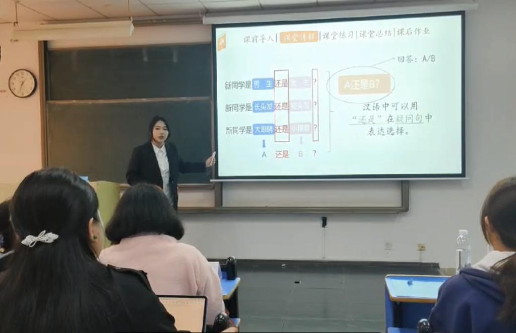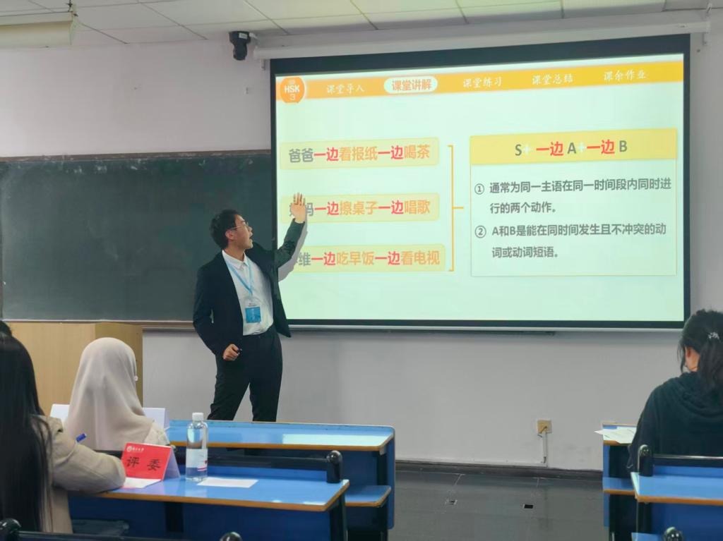 本次大赛全面考察教学能力、文化传播素养与跨文化沟通智慧,共吸引了来自全省11所高校108名本科生及研究生参加。从7月下旬接到比赛通知之日起,汉语国际教育教研室便迅速组织选拔,培养参赛选手。专业老师们带领员工从给定的《HSK标准教程》中选择篇目,反复打磨,对教案设计、课件制作、虚境教学及中华才艺展示等比赛环节精心准备,赛场上同学们精神饱满,声音洪亮,举止大方,落实“以员工为中心”的理念,将流行文化、新媒体科技元素融入课堂,与外籍员工临场互动,展示了新时代国际中文教育工作者的功底与活力。