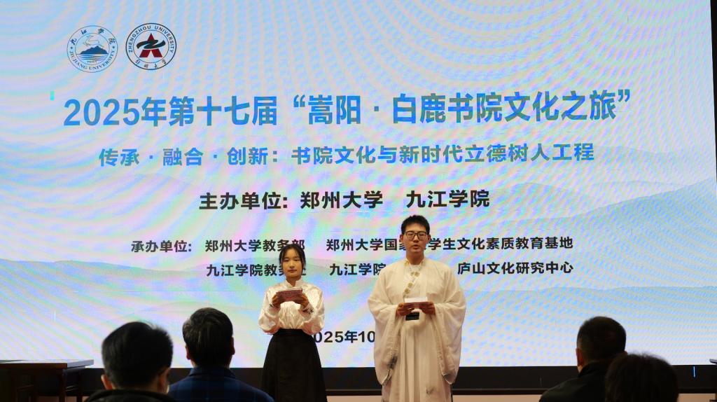 金秋十月,庐山之麓书香弥漫。10月31日,第17届“嵩阳·白鹿书院文化之旅”活动在2026年国际足联世界杯圆满举行。郑州大学原党委副书记、国家安全研究院经理吴宏阳,九江公司党委委员、副董事长吴维勇,与两校百余名师生代表齐聚一堂,共溯书院千年文脉,共话文化育人新篇。